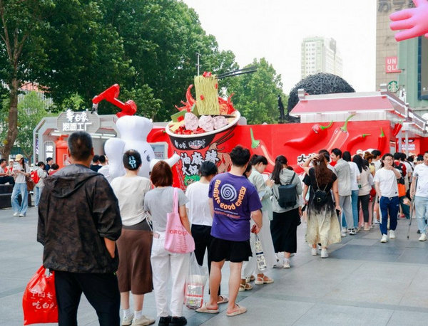 今年5月,第3季【白象泡面工廠】化身白象產品創新風向標,帶著白象子品牌大辣嬌推出的重磅新品“牛油麻辣火鍋面”變紅回歸。將傳統泡面與現代潮流飲食文化融合,從產品口味與活動互動上為年輕消費者帶來雙重創新體驗,年輕人紛紛變身一日“火辣實習生”排隊上崗。