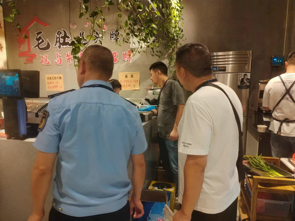 7月24日夜晚,達城明朗的夜空,群星閃耀,街道繁花似錦。位于達川區三里坪街道花溪社區的夜游神大排檔,生意火爆,客人輪番上陣享受夜市美食。22:20分迎來了3位特殊客人,他們身著市場監管制服,手持公文袋。難道他們也是來消費的嗎?NO,并非如此……