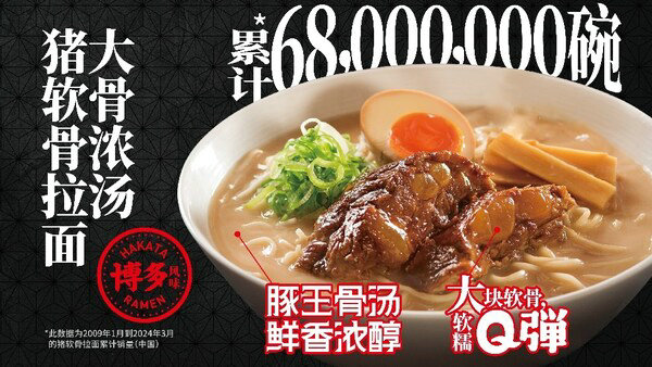 對食材的精挑細選和對烹飪技藝的不懈追求,以及長達半個世紀的傳承和創新,可以讓食客永遠相信味千拉面,包括如經2小時匠心熬制、1800秒不間斷擂潰的味千秘密配方-千味油;甄選歐洲優質原料、多汁入味十足的"豬軟骨"無一不為味千拉面的獨特風味錦上添花,也成為了食客們的心頭好。僅僅是招牌產品大骨濃湯豬軟骨拉面就累計賣出了約 6800 萬碗,成為了史上最熱銷的拉面之一,以優異的產品力積累了良好的市場口碑。
