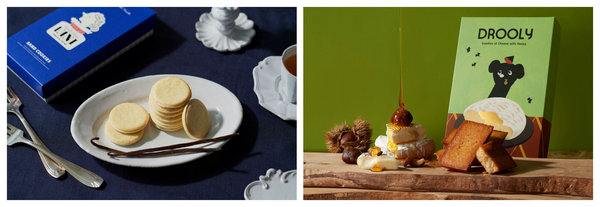 西式點心區有阪神梅田總店限定的品牌,包括人氣的甜品店,還有活用日式食材的面包店等品類齊全。特別推薦的是以“香草”為主題的甜點品牌“VANI”家的薄烤香草夾心餅干(如圖左)。還有以蜂蜜和奶酪為主題的甜點品牌“DROOLY”家的季節限定·阪神梅田總店限定的“費南雪”(栗子&卡門貝爾奶酪&蜂蜜)等秋季人氣甜點也將登場(如圖右)!