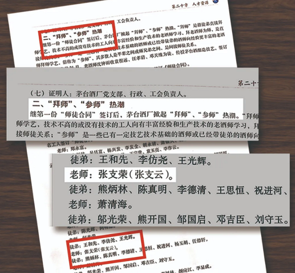 《中國貴州茅臺酒廠有限責任公司志》中記錄張支云收徒的經歷