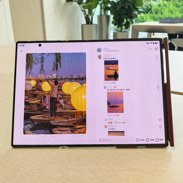 完美中秋夜,定格每一個團圓瞬間。將照片導入《美圖秀秀》,添加有趣的中秋專屬貼紙,將照片、文字、心情拼接成一篇筆記手帳,打開《小紅書》發布。與自己的互聯網鄰居云享今日喜悅。值得驚喜的是,華為Mate XT三折屏上體驗《小紅書》與HarmonyOS的絲滑適配,大屏幕不僅讓編輯過程更加得心應手,且更多展現出圖片與視頻的細膩質感。