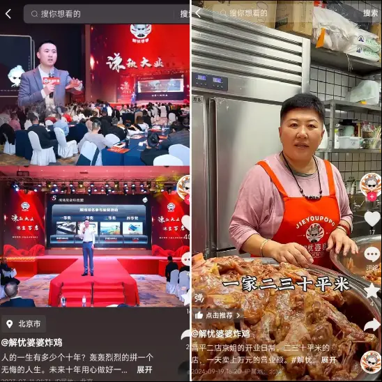 三四線城市的餐飲創業者不少是餐飲小白,解憂婆婆通過完善內部管理機制和加盟商服務,為小白提供從產品教學到選址到裝修再持續運營等一系列賦能。同時,還通過商學院做持續的教學輸出,讓加盟商掌握線上流量轉化為門店客流的方法。“得益于創始人在抖音內容創作的成功經驗,我們要求每個門店都要學習短視頻拍攝,門店抖音賬號就是個流量接收器和放大器。”楊曉雷表示。
