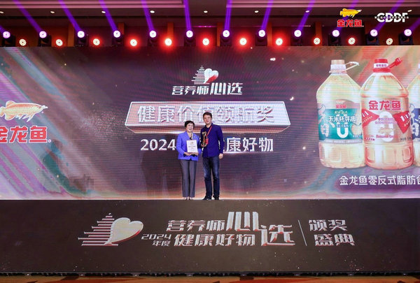 除了權威分享,創意互動展位和2024年度營養師心選健康好物頒獎儀式也是本屆營養師大會的亮點。金龍魚零反式脂肪食用油在技術審核及層層篩選中入選“營養師心選健康好物榜單”,獲得了“健康價值領航”獎。