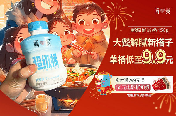 簡愛酸奶不僅承包了餐桌上的營養,更為消費者包下了春節檔電影票。據簡愛官方發布,1月20日起,線上前往天貓、京東、抖音等官方旗艦店,線下商超進店購買指定套餐、滿足消費金額,均可贈送或參與抽獎獲得電影票。